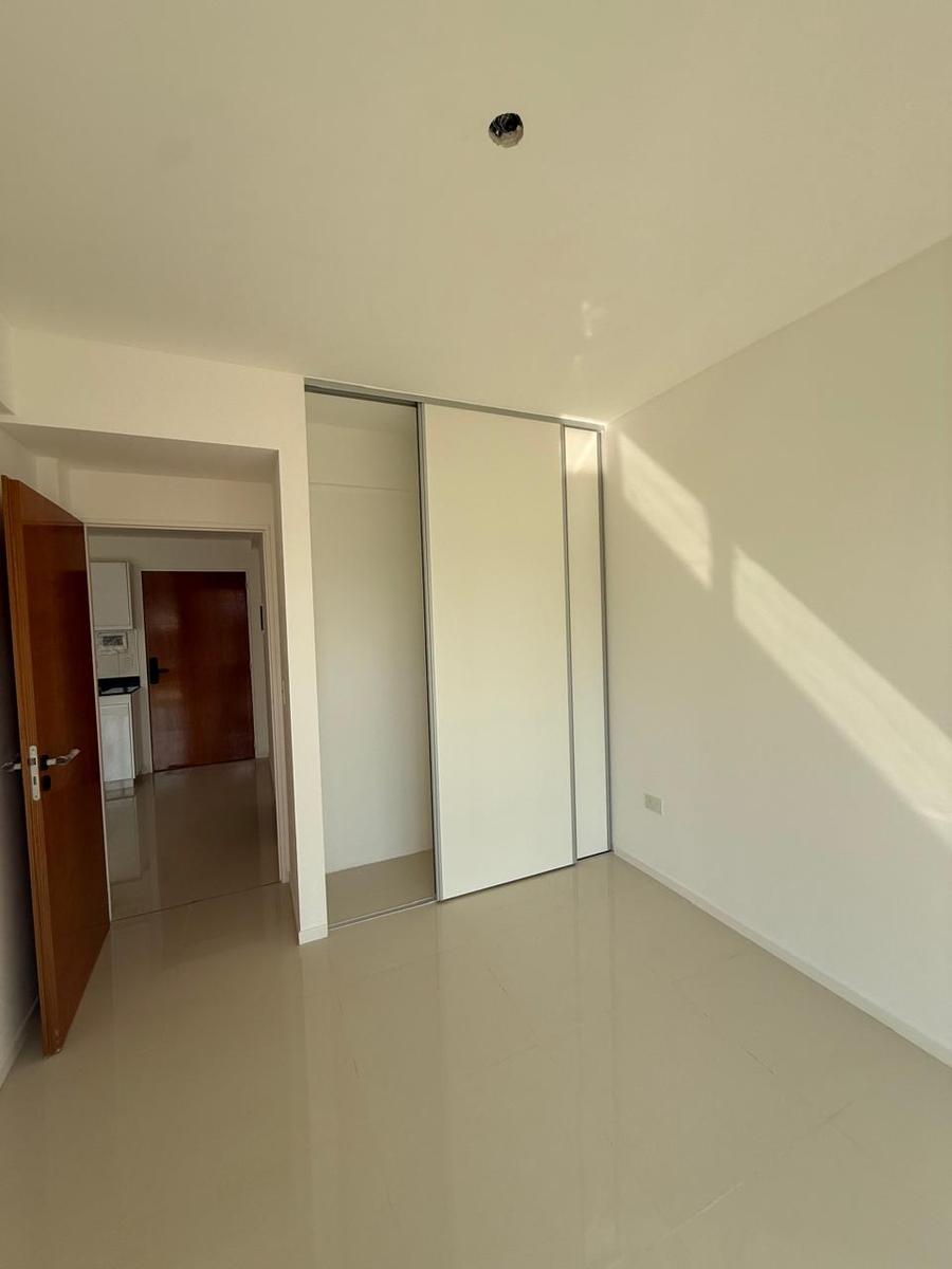 La unidad cuenta con un cómodo living-comedor con cocina integrada, dormitorio con placard y baño completo. Todos los ambientes poseen ventanales de piso a techo que aseguran excelente entrada de luz natural. Cochera fija incluida.
