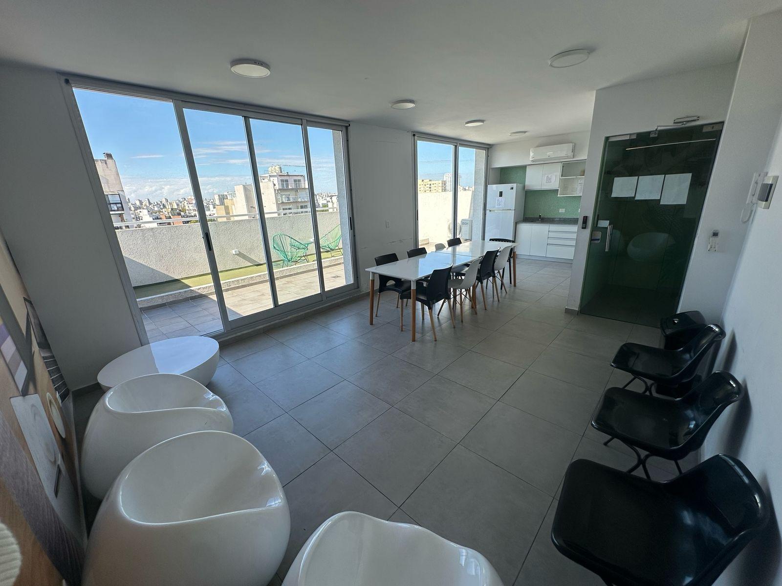 Moderno monoambiente al frente de 36,63 m² totales (32,30 m² cubiertos + 4,33 m² semicubiertos).Cuenta con balcón vidriado, cocina integrada con muebles bajo mesada y horno eléctrico, y baño completo con bañera y griferías de primera calidad.El edificio se destaca por su diseño contemporáneo y amenities premium: piscina con vista panorámica, gimnasio vidriado, SUM con cocina y parrilla, solárium y acceso electrónico.