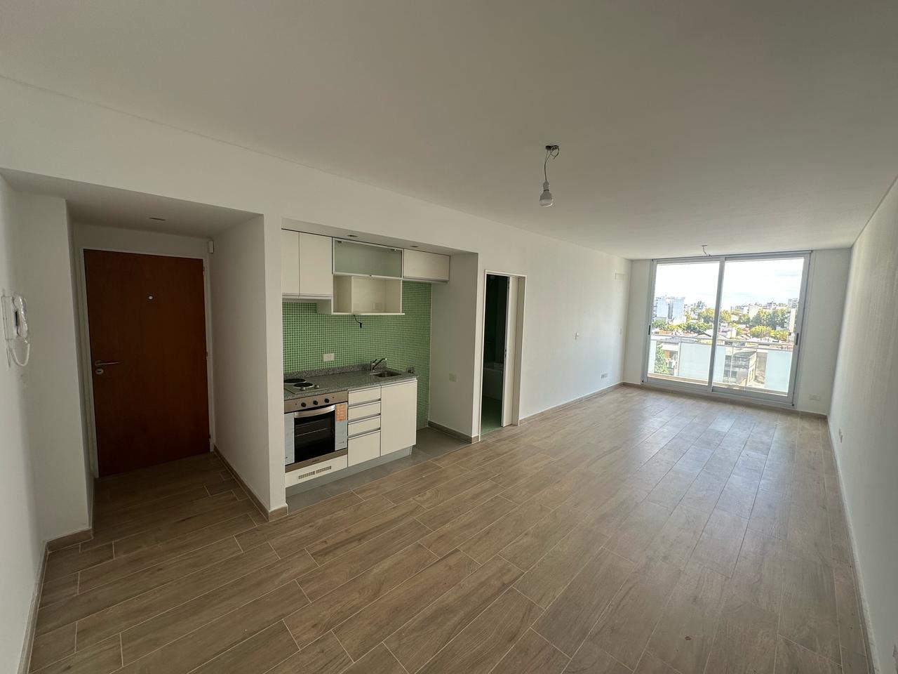 Luminoso monoambiente al frente de 36,70 m² totales (31,99 m² cubiertos + 4,71 m² semicubiertos), con balcón y vista abierta.Cocina moderna con anafe, horno eléctrico y muebles de guardado; baño completo con revestimientos con terminaciones de calidad.