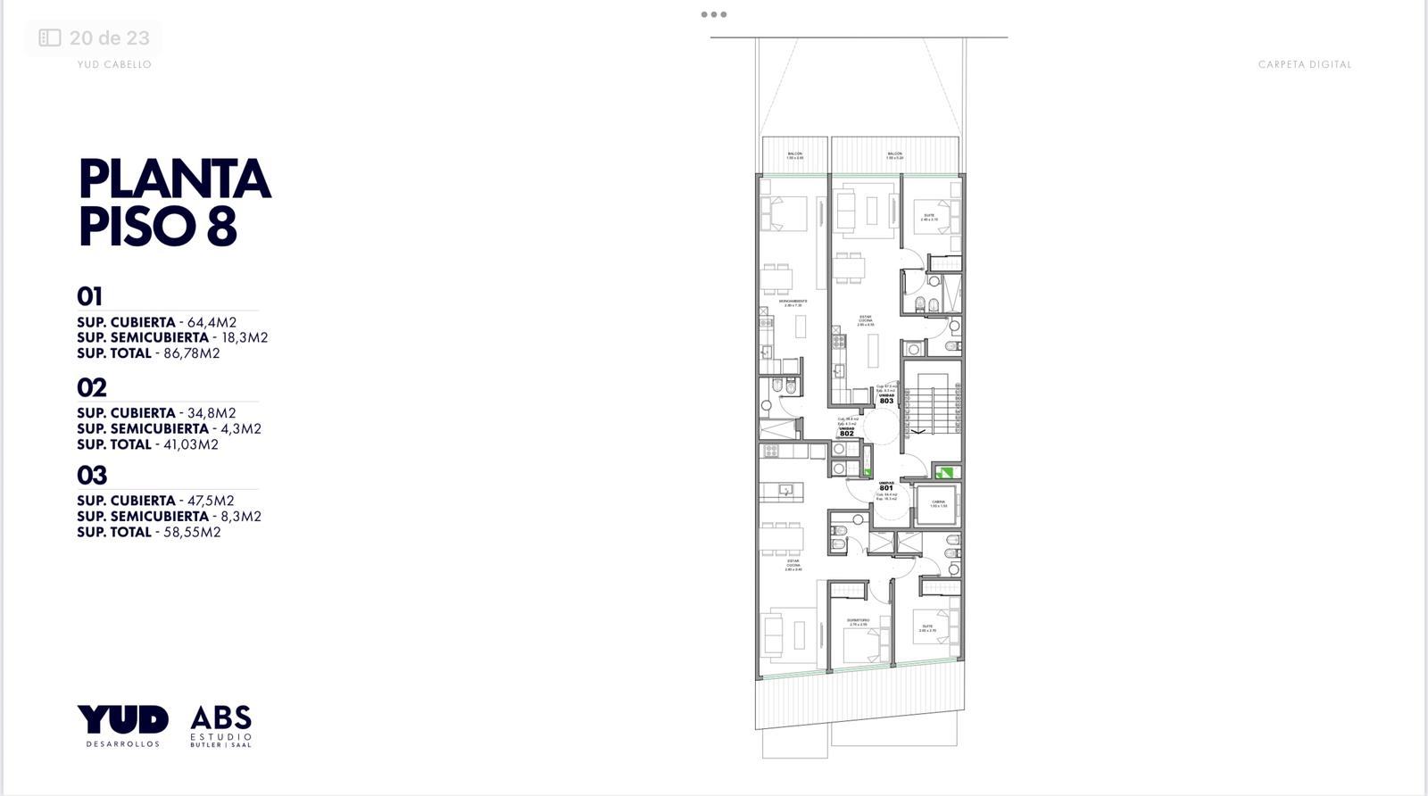 El edificio Cabello 3761 es un desarrollo moderno y funcional proyectado por YUD en el corazón de Palermo, uno de los barrios más elegantes y conectados de la ciudad. Consta de 9 pisos más azotea y un local comercial en planta baja, combinando tipologías de 1, 2 y 3 ambientes, todas con balcones y excelentes terminaciones. El proyecto está pensado tanto para quienes buscan vivir en una zona estratégica como para quienes desean invertir en renta temporaria, ya que es apto profesional.